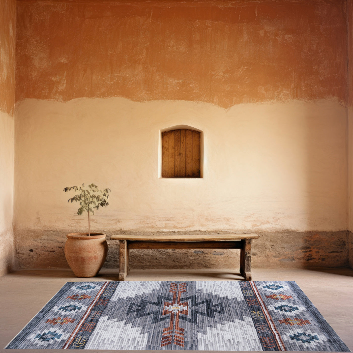 HR Bohemian Area Rug - Non-Slip Rubber Backing, Traditional Pattern #114